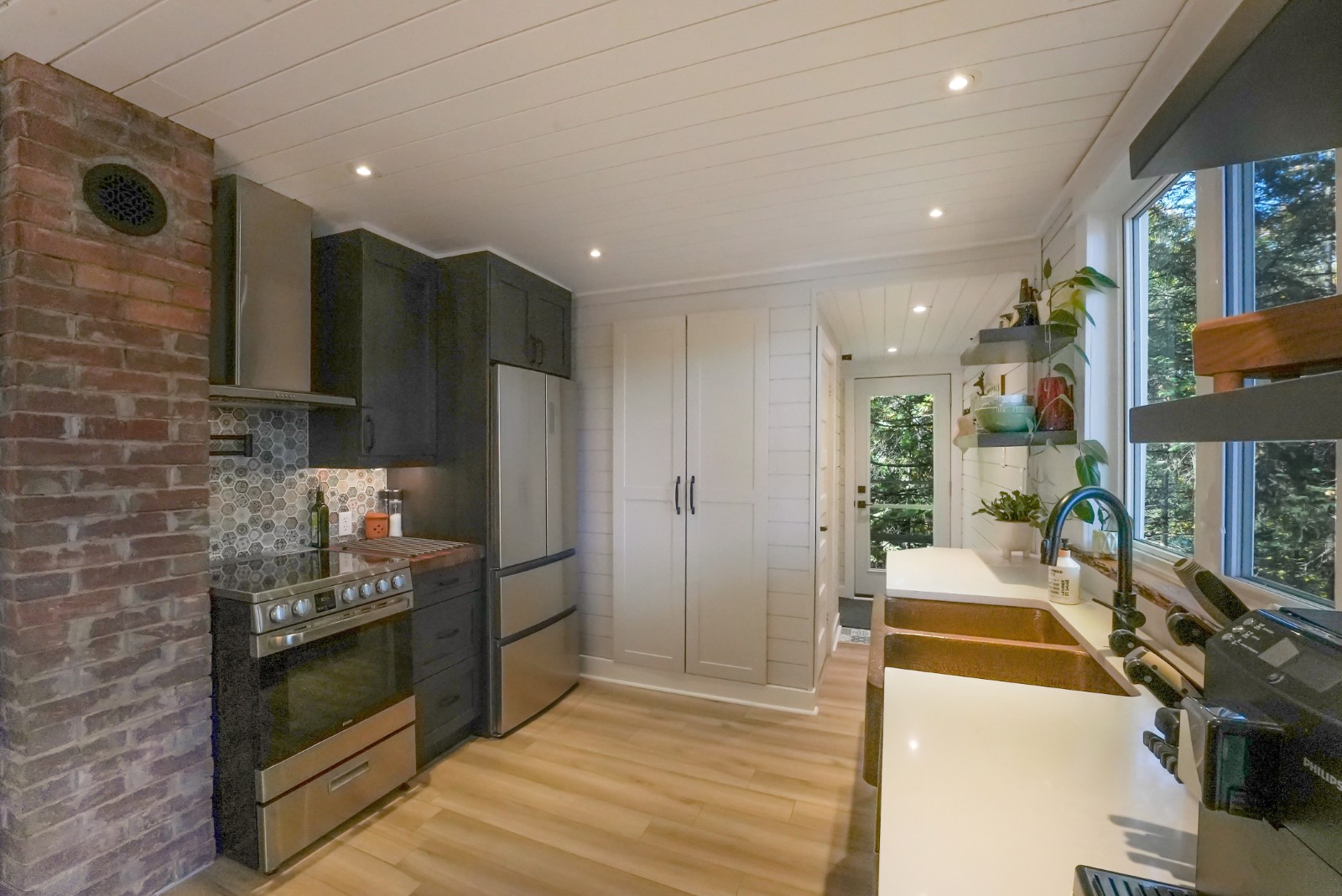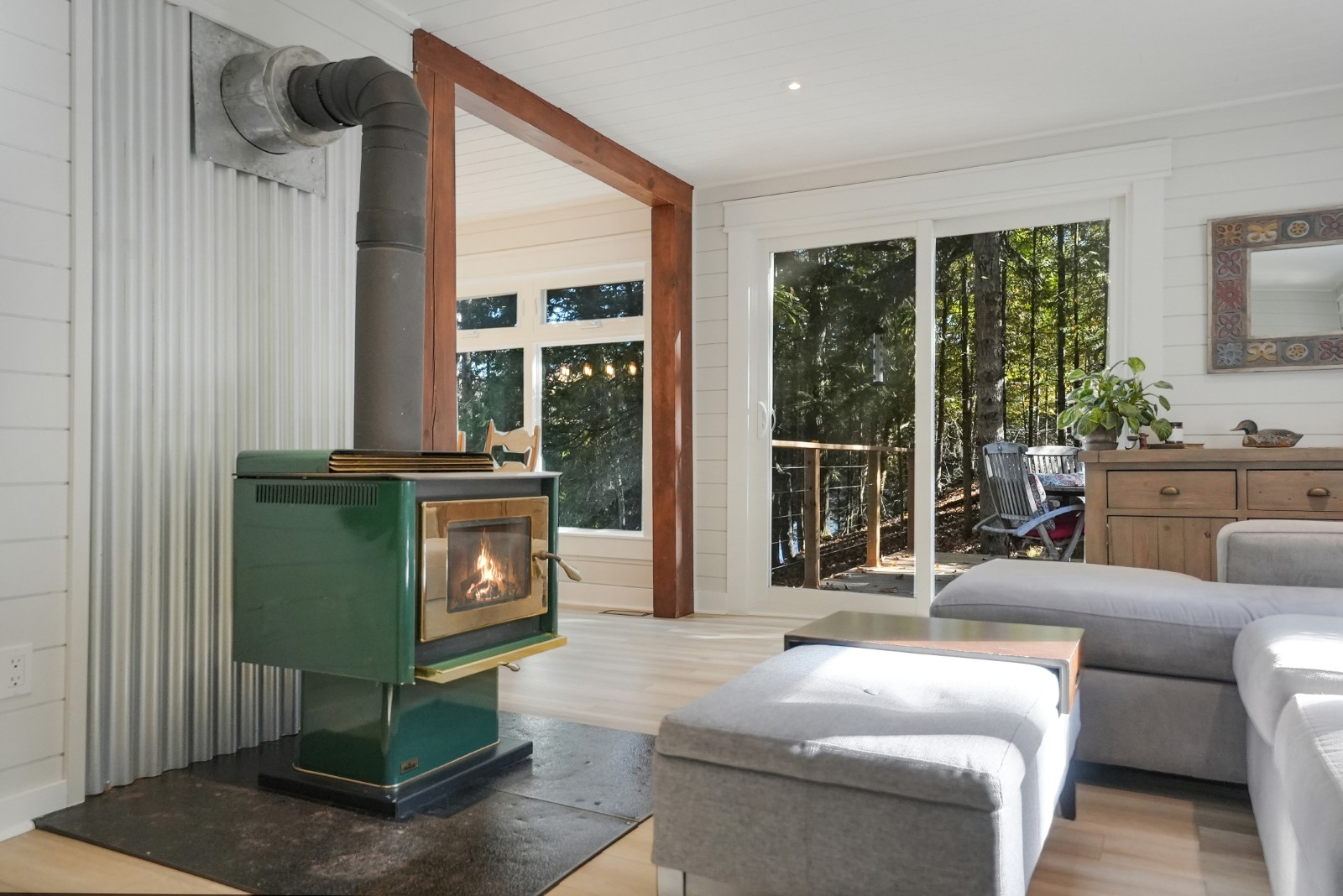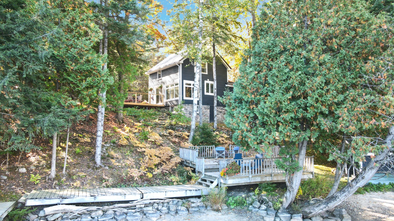 The 2-storey home features 1017 sq. ft. of living space with 2 bedrooms and 2 bathrooms, forced air propane, and A/C. The main level offers an open-concept living and dining area flowing into the updated kitchen, complete with quartz countertops, mosaic backsplash, hammered copper sink, and pot filler. A 2-piece bath and multiple walkouts to large decks overlooking the water complete the main floor. Upstairs, find 2 generous bedrooms and a 3-piece bath, including a primary with walk-in closet.