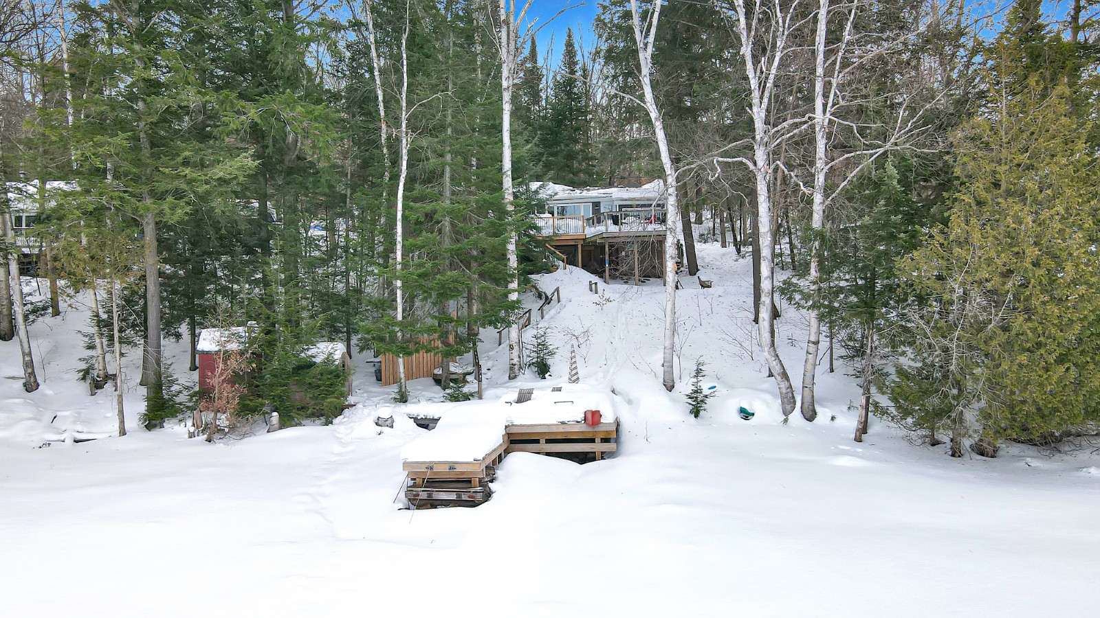Create cherished memories with your loved ones at this charming Kennisis Lake cottage that has been treasured by the family for over half a century. As you drive in, an easy level laneway leads you to breathtaking southeast views overlooking the stunning Kennisis Lake! The lot is nestled behind an island, providing minimal boat traffic and protection from the lake, while still offering spectacular lake views that extend beyond the island. You'll be delighted to find a hard-packed sand beach with a gentle slope into the crystal-clear waters, offering a safe and fun play area for kids of all ages. The cottage boasts approximately 840 square feet of living space, complete with three cozy bedrooms and one bathroom on the upper level, and an additional living space downstairs, which includes a large recreation room and bathroom, perfect for family bonding time. During the cooler late autumn and early spring months, the cozy woodstove in the living room will keep you warm and toasty. Kennisis Lake is one of Haliburton's largest waterways, complete with a marina, providing endless opportunities for family fun on the water. This exceptional cottage with a solid foundation and endless potential awaits the next family to create unforgettable memories and make it their own. Don't miss out on this rare chance to own a sensational waterfront property that your family will cherish for generations to come.