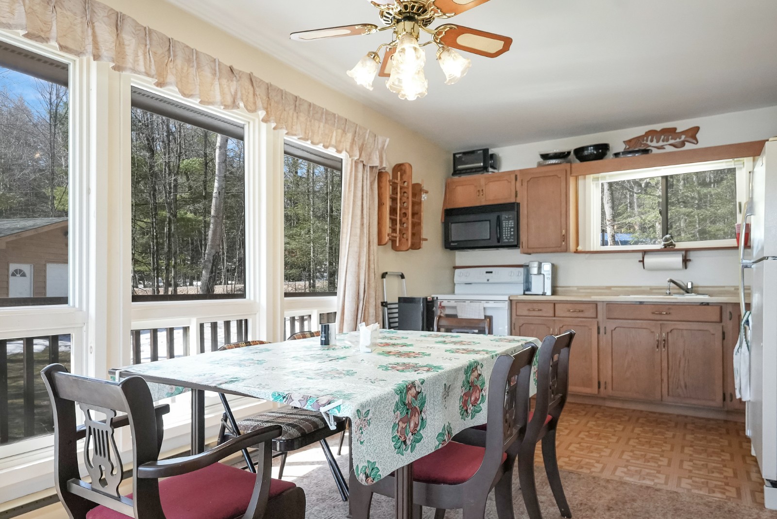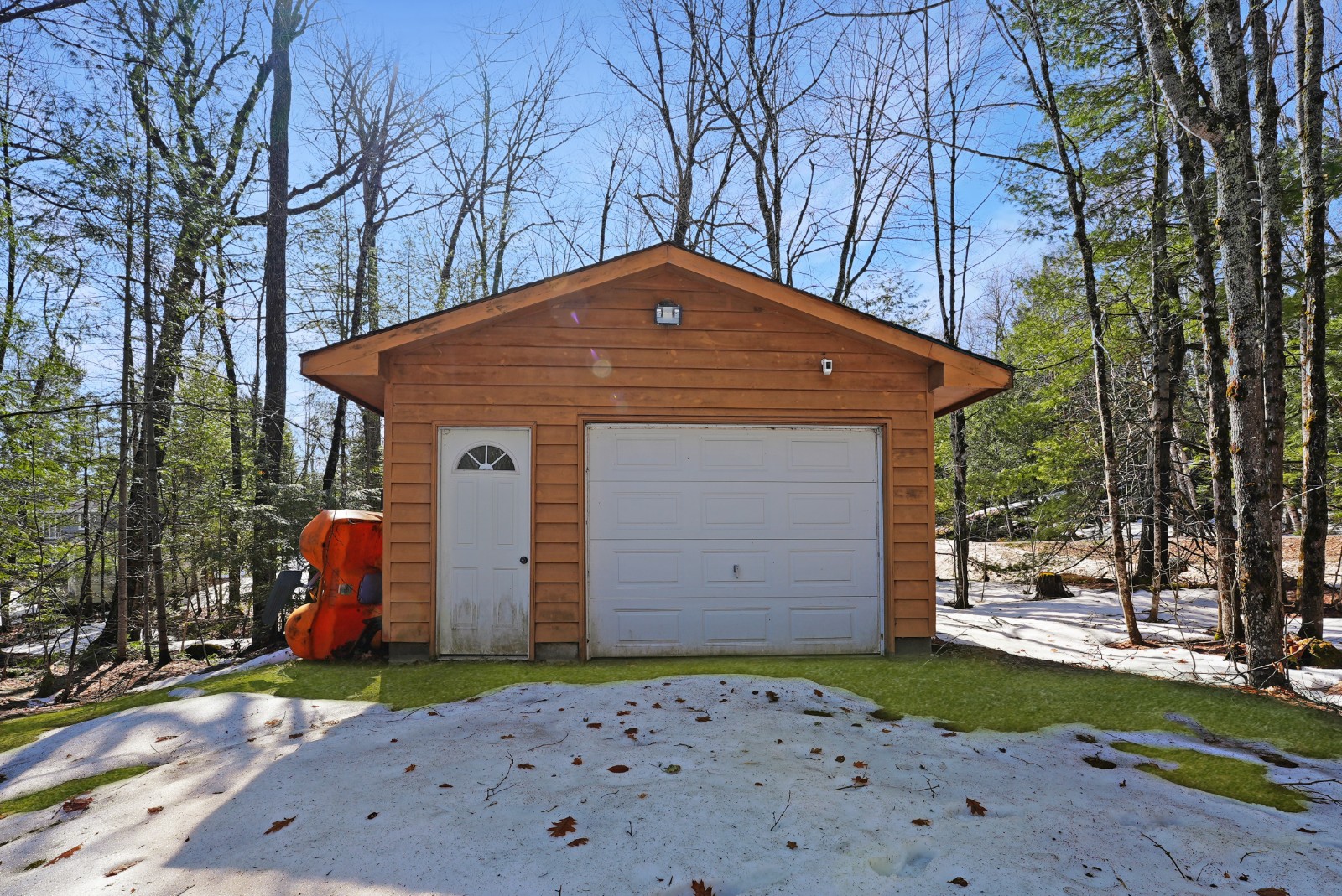 Inside, the cottage offers 3 bedrooms and 1 bathroom, with a comfortable layout suited for family use. The main level family room provides a central space to gather, while the walkout lower-level rec room adds extra room for games, movie nights, or accommodating guests. Additional features include a detached single-car garage (16' x 24') for storage or workspace, along with a garden shed for tools and seasonal items. With a layout that supports both indoor and outdoor living, and a property designed for all ages to enjoy, this Kushog Lake cottage is well-suited for families looking to spend time together in a relaxed, waterfront setting.