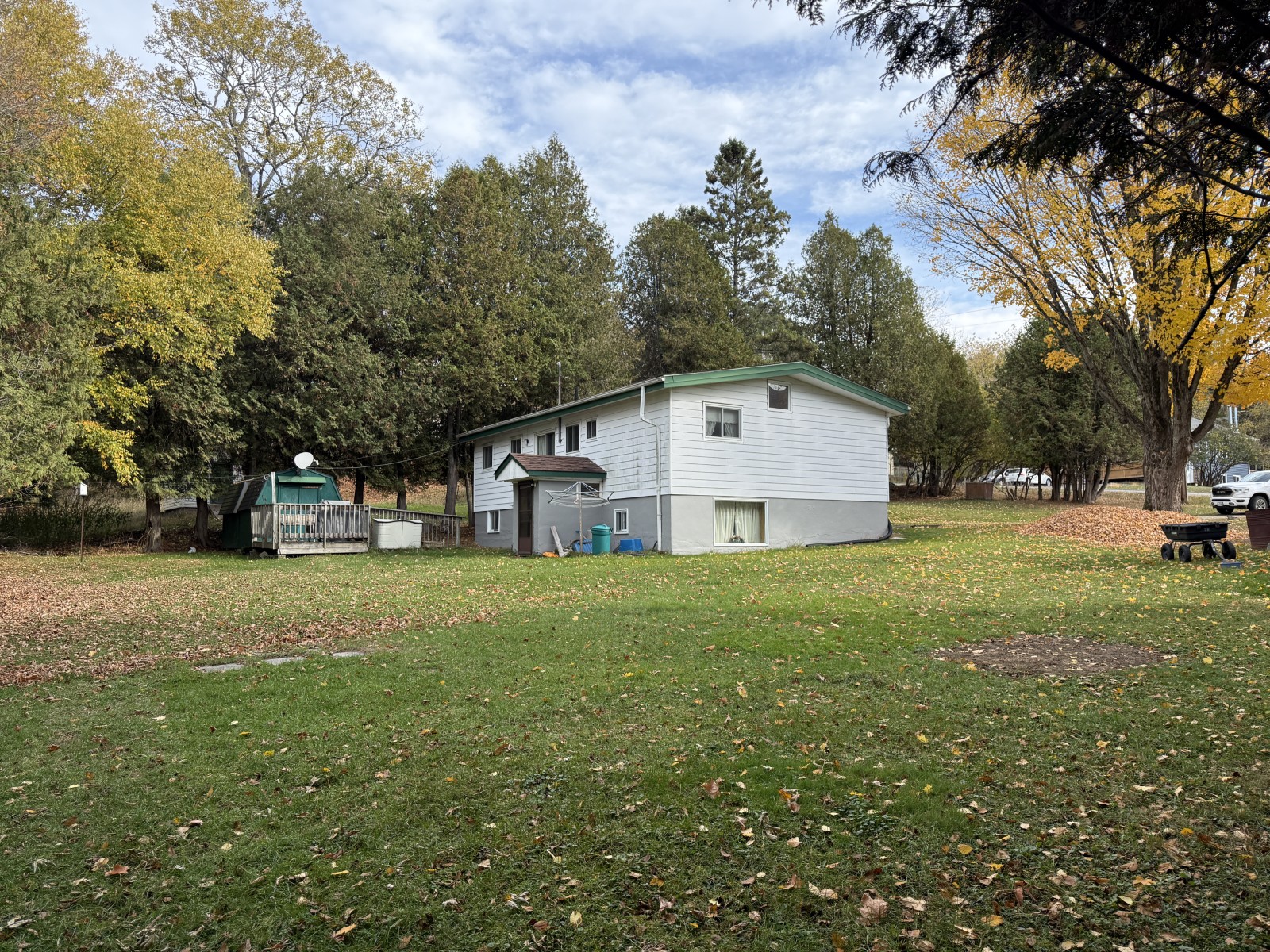Outside, enjoy a partially fenced yard for pets or kids to safely explore, plus a detached garage, carport, and an insulated outbuilding with a 7-person Beachcomber hot tub for family fun or relaxation after a busy day. Families who love the outdoors will appreciate nearby snowmobile and ATV trails, a local playground, and the friendly community atmosphere. Move-in ready and packed with features, this property offers everything your family needs to feel at home.